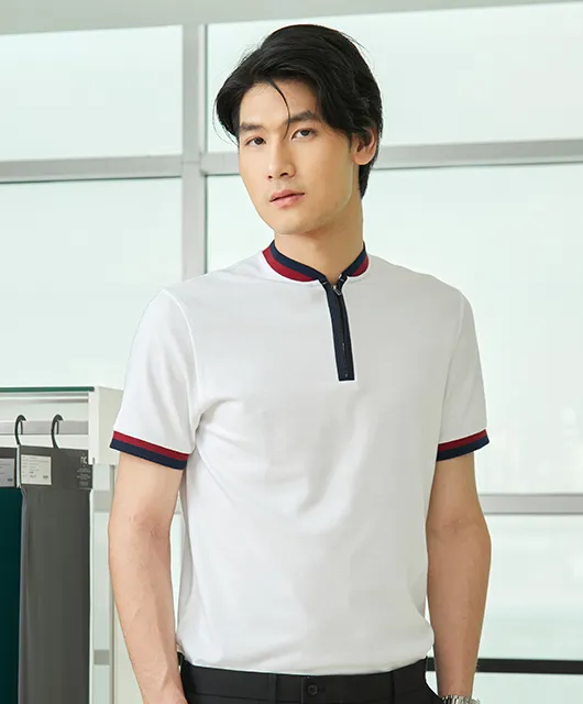 A neat, professional polo with subtle contrast edging on the sleeves and collar. Adds depth without being flashy—perfect for organizations seeking a refined yet stylish team look.